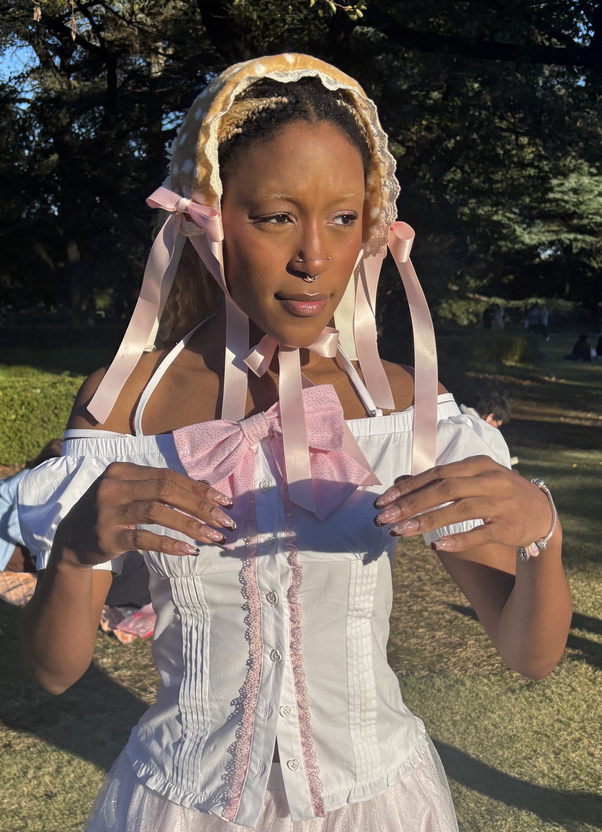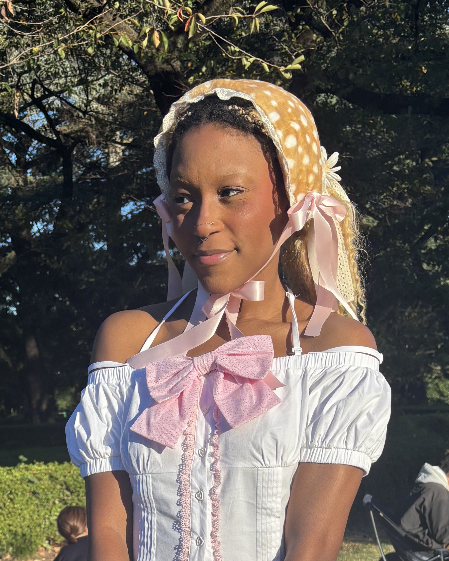 Handcrafted ear warmer featuring a charming deer print design with delicate pink bows positioned on each side. This made-to-order piece combines cozy comfort with thoughtful details—off-white lace trim frames the edges while a soft pink ribbon tie ensures a secure, adjustable fit. Perfect for those seeking a unique accessory that blends whimsy with warmth. Each piece is individually crafted to order, ensuring quality and personalization.
